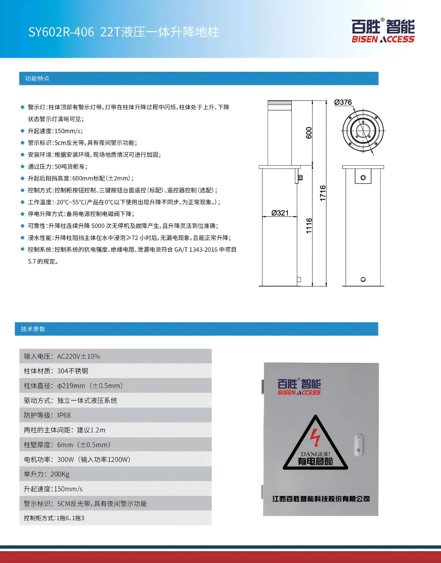 警示燈:柱體頂部有警示燈帶,燈帶在柱體升降過程中閃爍,柱體處于上升、下降狀態警示燈清晰可見;
