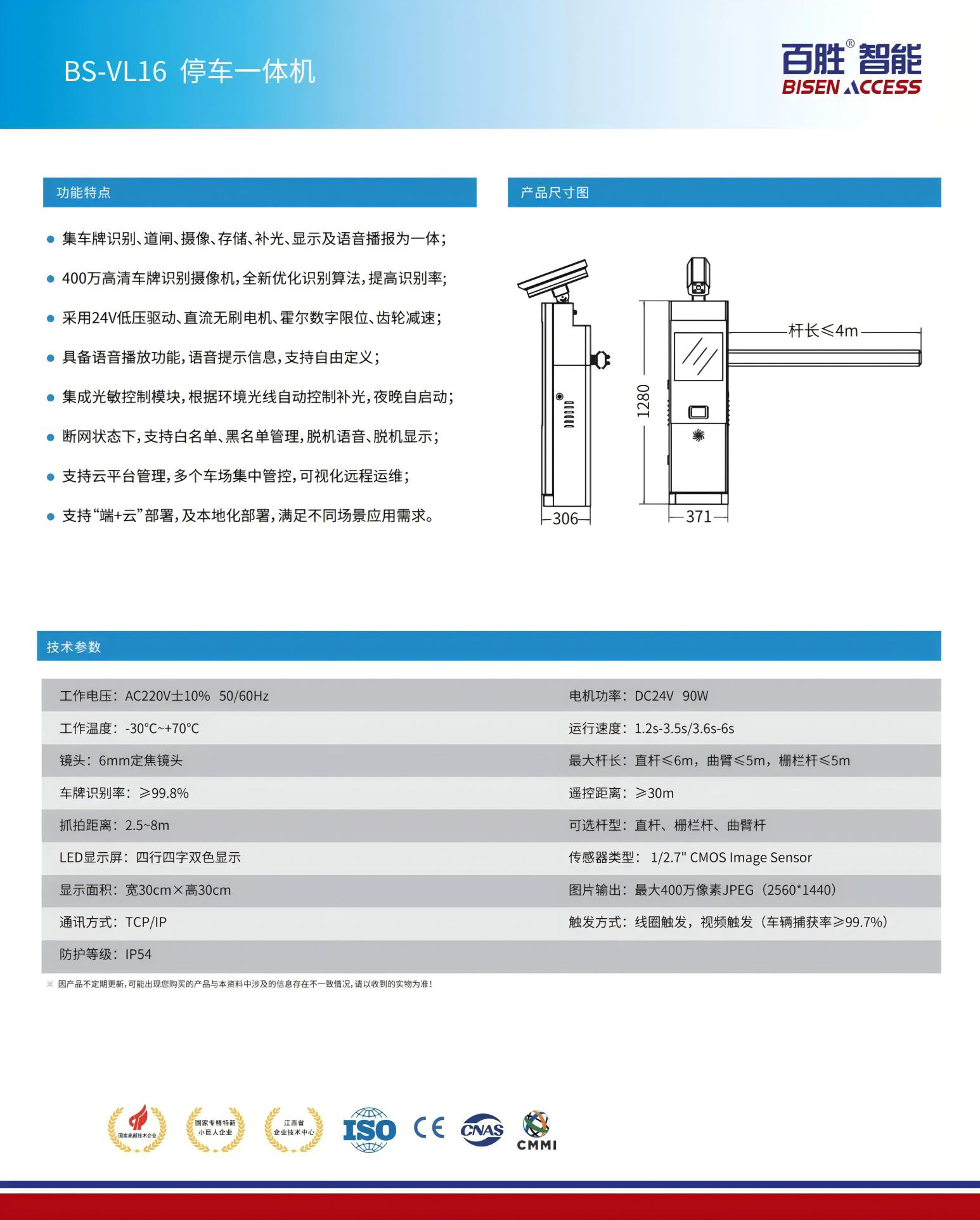 ●集車牌識別、道閘、攝像、存儲、補光、顯示及語音播報為一體;
