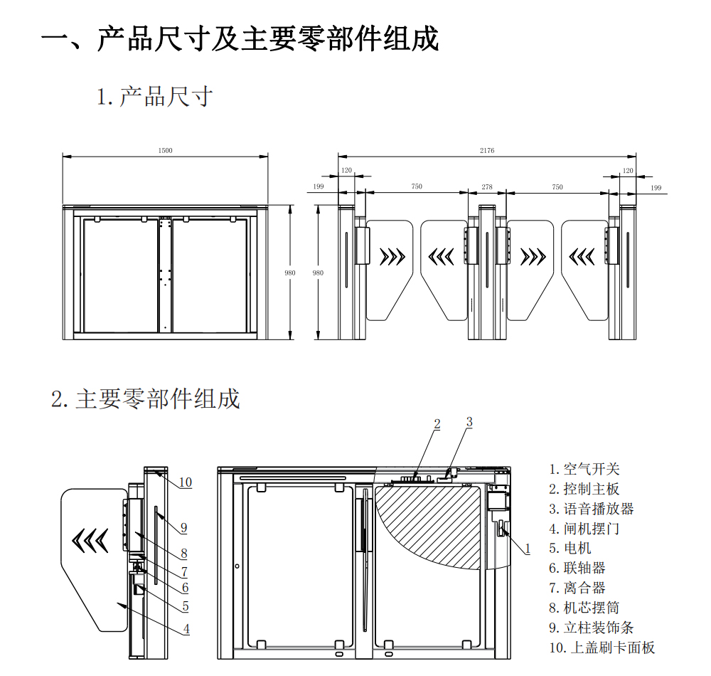 3. 采用RGB三彩LED作為配合通行狀態指示燈,外觀彰顯絢麗,外觀二、主要功能特點