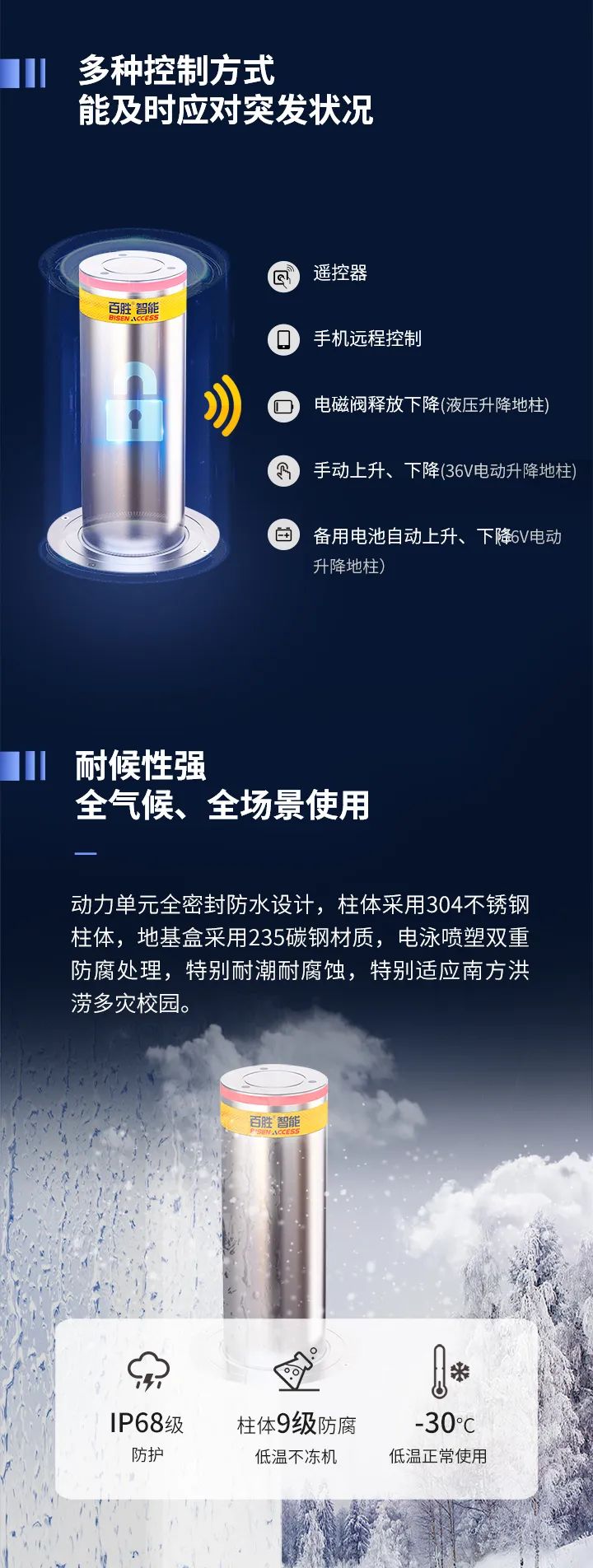 升降地柱在公共場所安全建設方面扮演著重要的角色,能夠預防車輛惡性沖撞引發的巨大傷亡,實現人車分流、將車輛限制在特定區域,提升公共安全性。